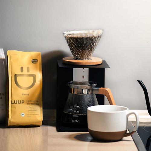 Im Filter oder der French Press bekommst du das beste Ergebnis. Je länger unser Lupinenkaffee in Kontakt mit Wasser ist, desto besser wird er.